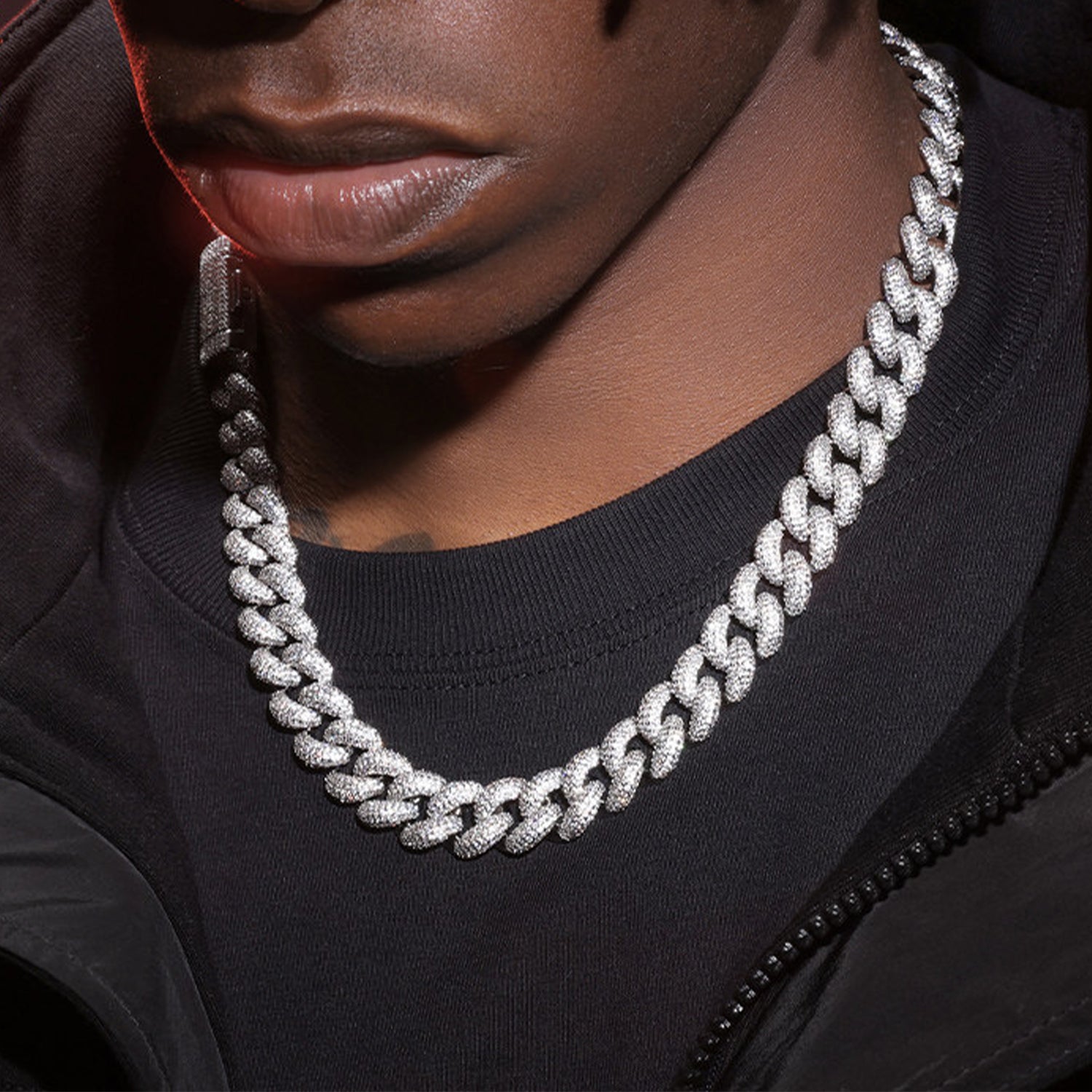 Cuban Link Necklace with Zirconia Stones - Hip-Hop Style (NE-GR-002)
